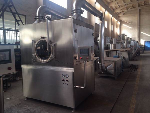 BGB高效包衣机主要用于制药及食品工业。是片剂、丸剂、糖果等进行有机薄膜包衣、水溶薄膜包衣、缓、控释性包衣、滴丸包衣、糖衣包衣及巧克力、糖果包衣的一种高效、节能、安全、洁净、符合GMP要求的机电一体化的包衣设备。